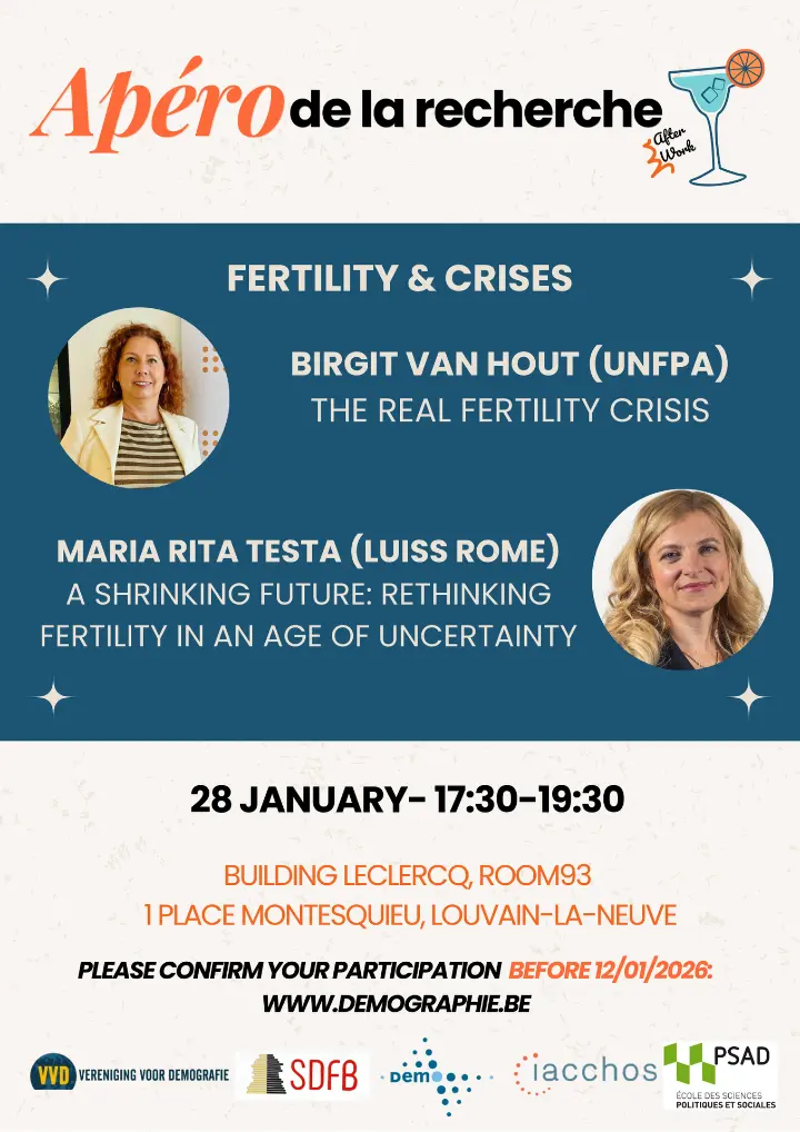 Début 2026, la SDFB organisera un nouvel apéro de la recherche, en collaboration avec la VVD. Il portera sur la thématique des crises et la fécondité.